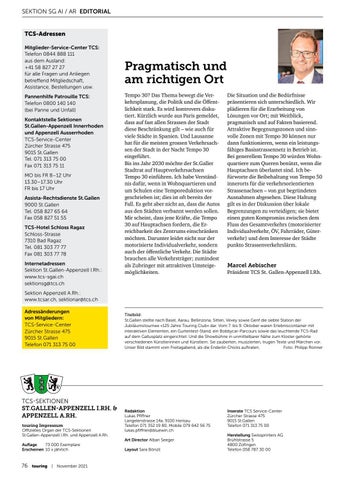 TCS-SEKTIONEN ST.GALLEN-APPENZELL I.RH. & APPENZELL A.RH. touring Impressum Offizielles Organ der TCS-Sektionen St.Gallen-Appenzell I.Rh. und Appenzell A.Rh.