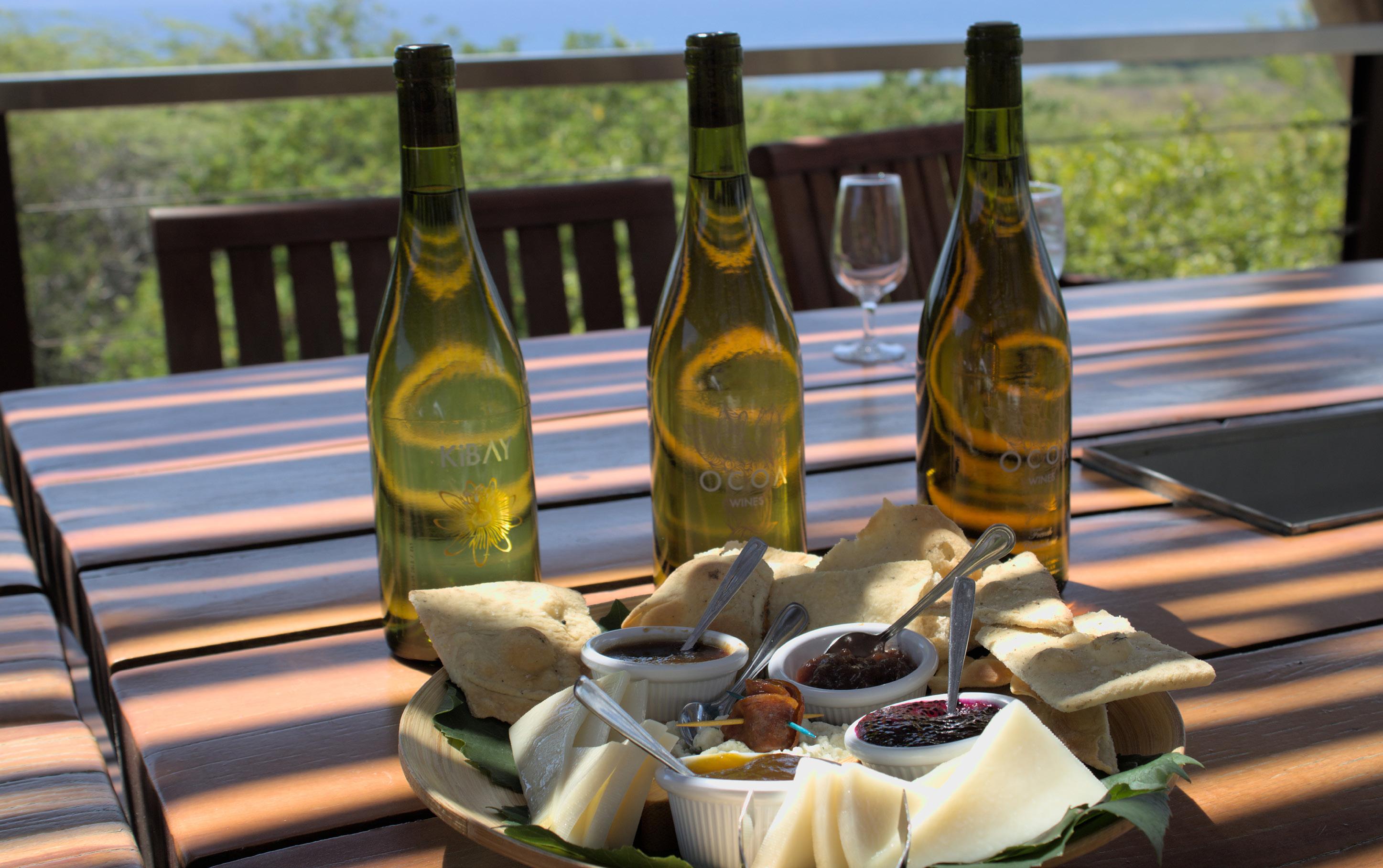 El recorrido termina en una terraza sombreada con vista al mar. Allí se realiza la cata, donde se degustan los vinos de la finca acompañados de delicias locales: quesos de cabra artesanales, pan focaccia recién horneado y mermeladas de frutas tropicales. Todo preparado con ingredientes de la zona.