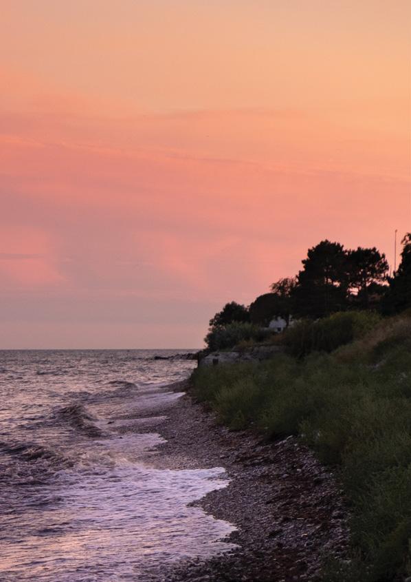 führt nah an der Küste durch Dörfer und ländliche Gebiete. Außerdem passieren wir das Reservat Morups Tånge, das unter Vogelbeobachtern bekannt ist. Zwischen rundgewaschenen Steinchen und Wiesen erhebt sich der Leuchtturm Morups