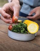 Während wir die Fahrräder entladen, kommt einer der Besitzer, Will Oldfield, mit einem Picknickkorb im Arm durch die Plantage. Die Köstlichkeiten aus dem Hofladen Trädgården på Skäret sind die Zutaten fürs Abendessen, das wir im Freien beim Zelt zubereiten.