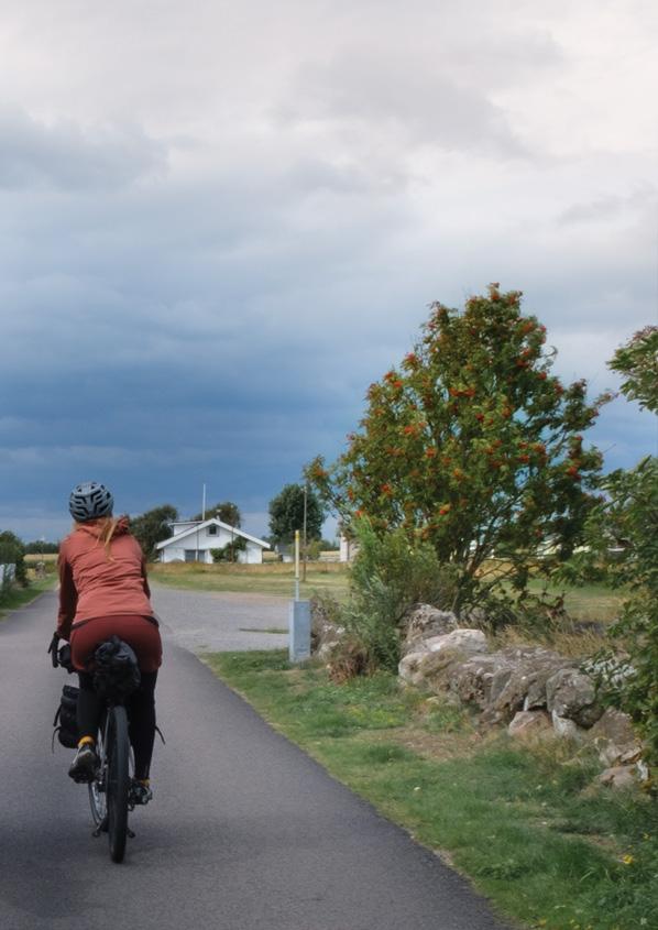 Die drei nationalen Radwanderwege sind jeweils in mehrere Etappen unterteilt. Für jeden Abschnitt gibt‘s Tipps zu Gaststätten, Sehenswürdigkeiten und Übernachtungsmöglichkeiten. Der Sydostleden hat sieben, der Sydkustleden sechs und der Kattegattleden acht Etappen. Unser Reisebericht basiert allerdings nicht auf den Etappen. Stattdessen findest du unter www.southswedentrails. de mehr Informationen dazu. Auf dem Sydkustleden kommt man regelmäßig an Geschäften, Unterkünften und Gaststätten vorbei. Dasselbe gilt für den Großteil des Kattegattleden. Auf dem Sydostleden passiert man zumindest auf den nördlichen Abschnitten mehrere dicht besiedelte Gebiete. Es ist die Nähe zur Natur, die diesen Weg einzigartig macht – auch wenn das bedeutet, dass man die Verpflegung und Übernachtungen sorgfältig planen muss.