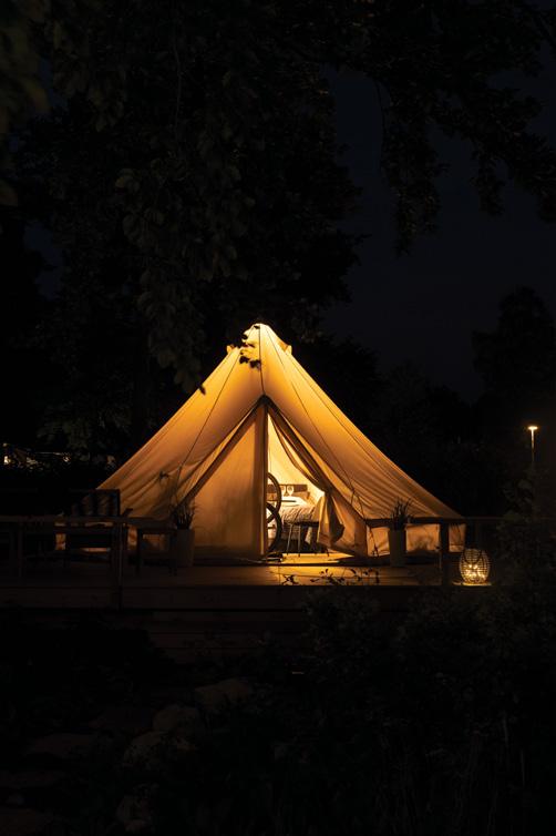 Nach einem letzten Schauer zeigt sich ein Regenbogen am Himmel, und als wir bei Coasters Glamping ankommen, scheint wieder die Sonne. Die Unterkunft befindet sich in einer der wenigen Weingegenden Schwedens. Gleich nebenan liegen die Weingüter Kullabergs und Arilds vingård, die beide Führungen und Verkostungen anbieten.