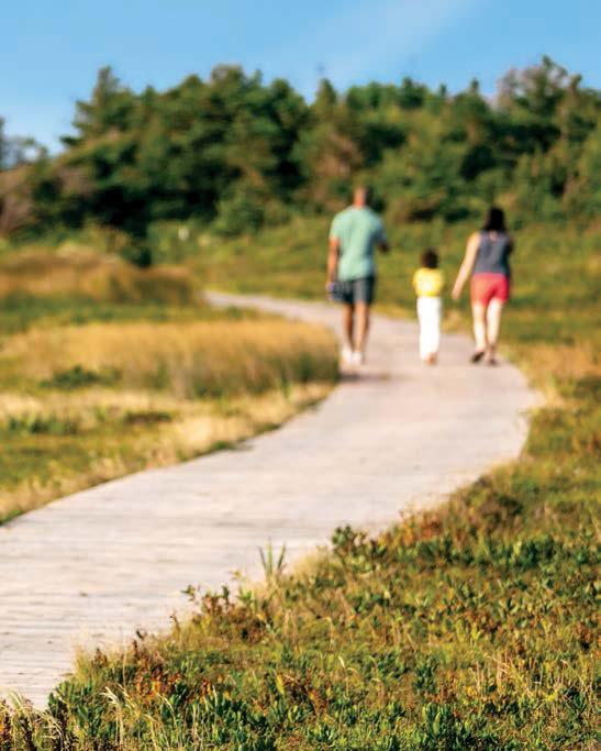 Our white-sand beaches are as fragile as they are beautiful. Do not play or walk on dunes. Always stay on designated paths and stairways at the beach to protect fragile dune systems; natural habitats for rare plants, wildlife and shore birds. Leave your firewood home as outof-province logs could destroy a forest. Buy local instead. Retailers do not provide plastic checkout bags. Shoppers may bring reusable bags or purchase paper ones onsite.