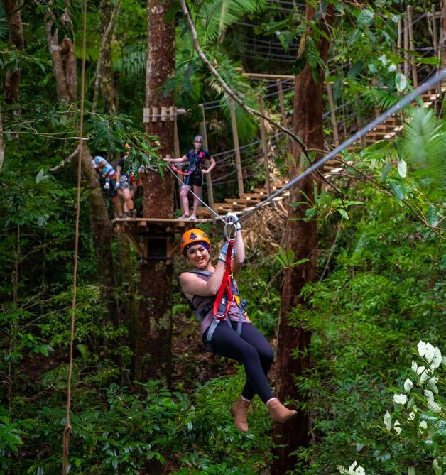 Thrill seekers can get an all-new perspective of the rainforest by soaring above the rainforest canopy on Treetops Adventure’s zip line.
