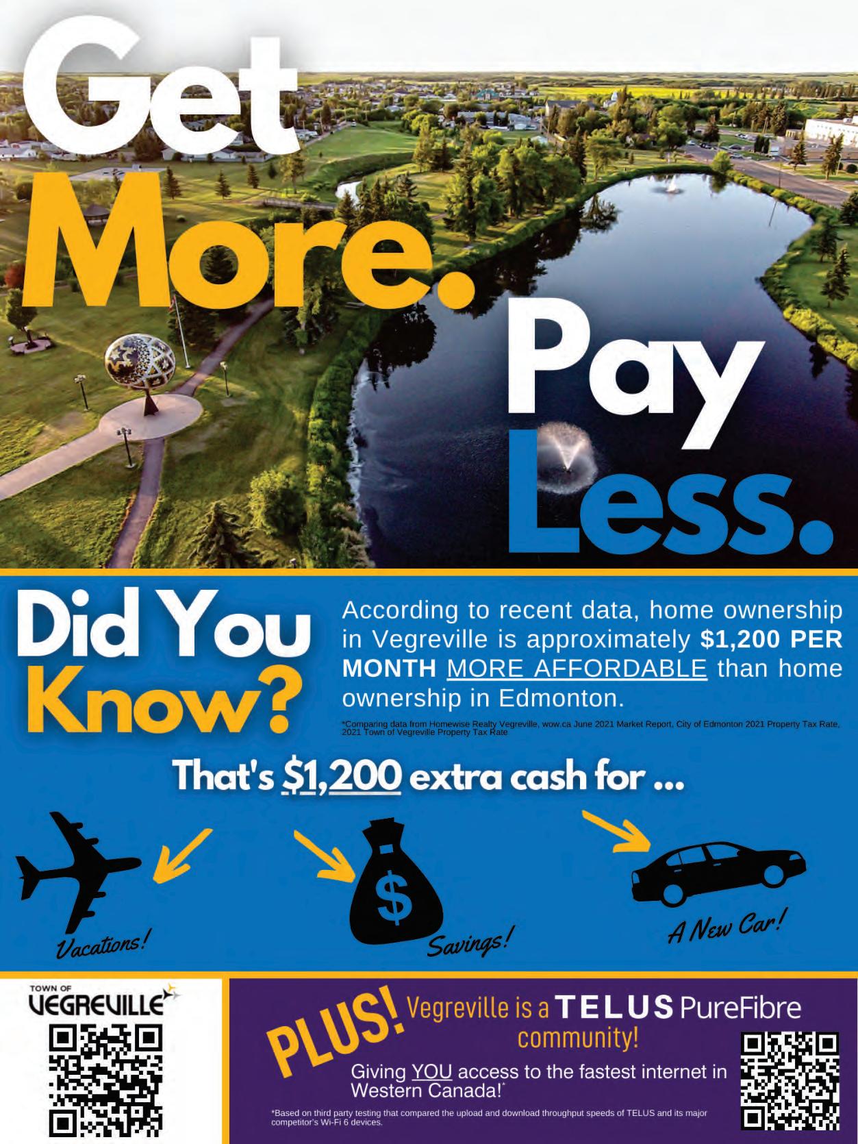 Vegreville draws retail trade from many surrounding municipalities within a 50km radius. Businesses benefit from access to over 30,000 potential shoppers from nearby communities, including just under 5,700 Vegreville residents.