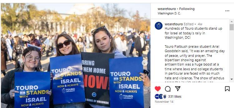 Touro students, deans, and leaders from across the university system come together to show support for Israel at a rally in Washington D.C. and Touro University hosts grand opening for new Times Square campus