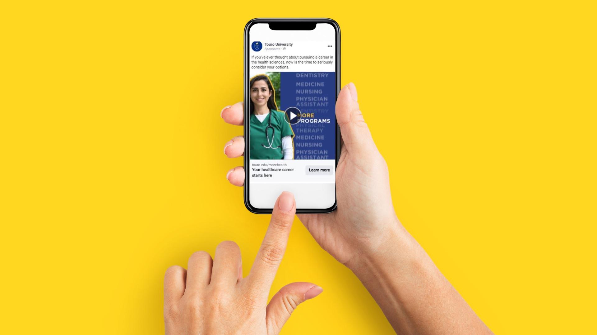 A 15-second video ad targeted undergrads in the sciences and undergrad advisors, with retargets from the website and those who engaged with Touro on social media.