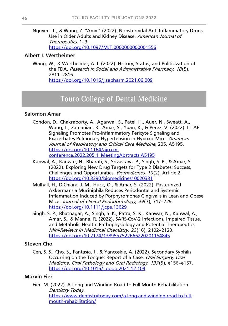 • Merit award in the Publications/External category for Touro At a Glance