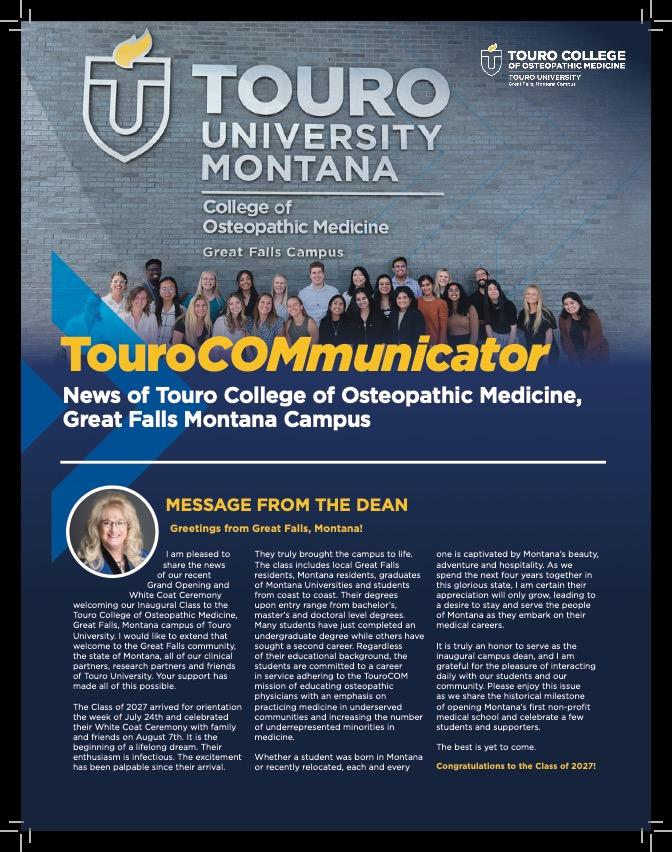 "Touro welcomes our very first class at our brand-new Touro College of Osteopathic Medicine in Great Falls, Montana!"