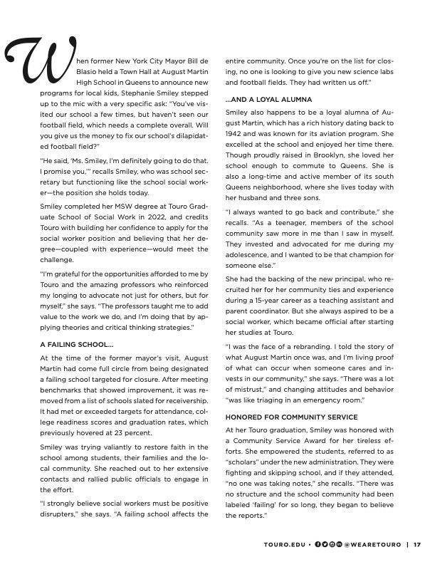 • Gold award in the Publications/Internal category for Touro Links Magazine