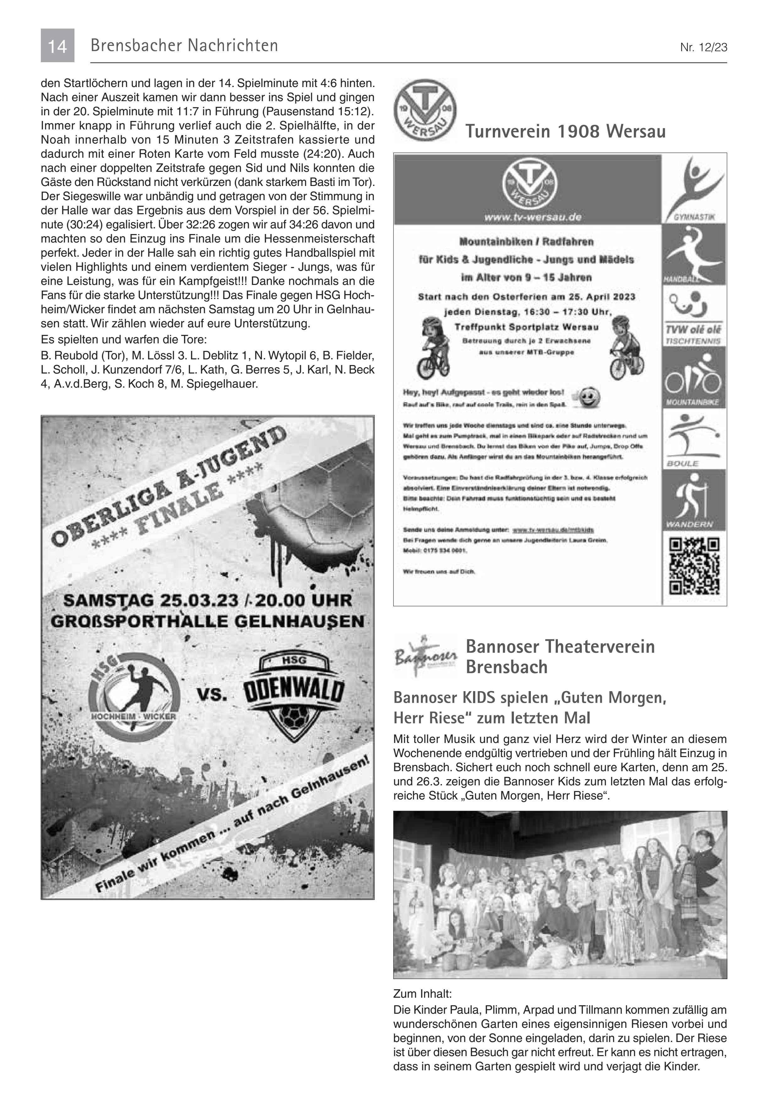 WWW.BRENSBACHER.DE Nachrichten - Wochenzeitung für Brensbach und Ortsteile 12/23
