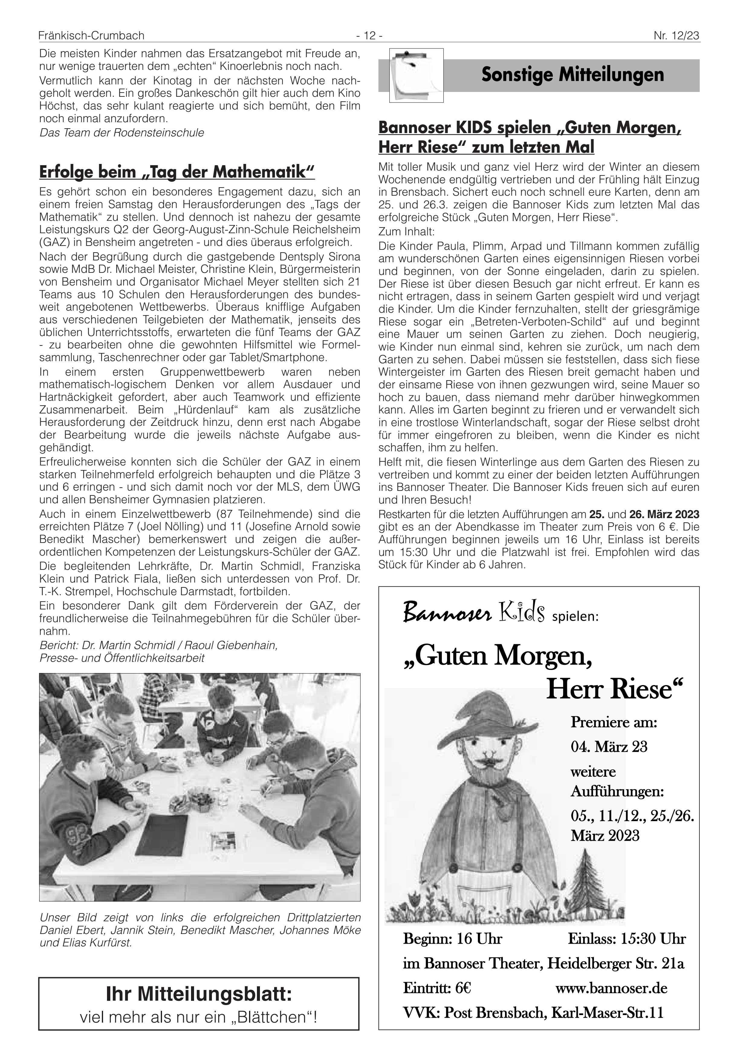 Fränkisch Crumbacher Nachrichten 12/23 | #koogle www.Presse-Echo.de