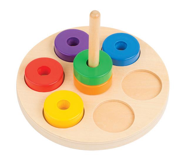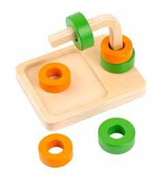 With ‘Stack the Ring’, practice fine motor skills and eye-hand coordination while the children must slide the rings on the pin. In addition, the child is introduced to the mechanism of cause-effect and to different colors.