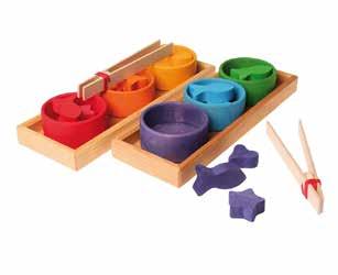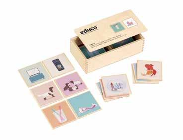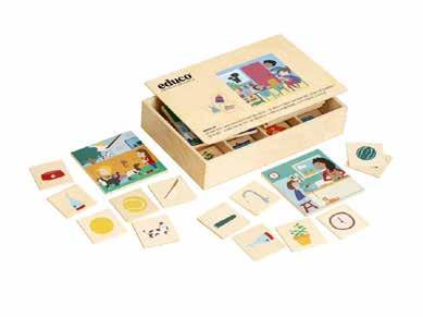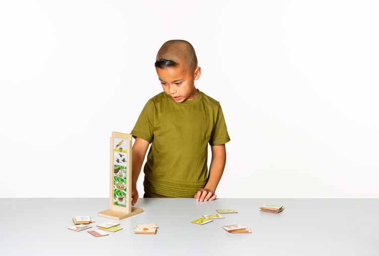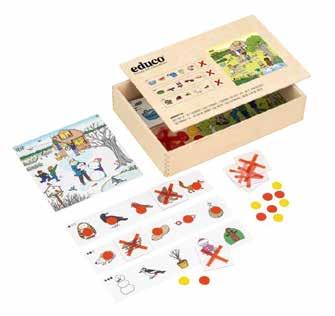 Place the items in the wooden stand as shown on the assignment cards or create your own story. Stimulate spatial orientation, vocabulary and storytelling. 3Y+