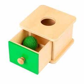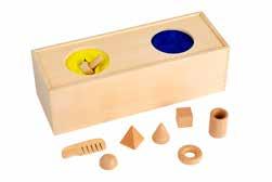 Identify objects by touch and develop the tactile sense. Expand the vocabulary by naming what’s in the box.