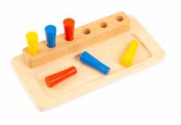 Place the pegs in the holder and practice movements coming from the wrist. This also strengthens the fist, something that is important for writing later on.