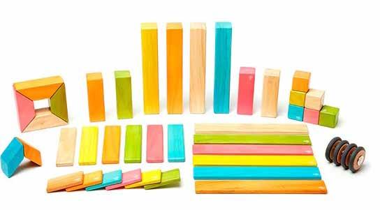 Use the blocks to experiment with various colors and sizes. Position the blocks in the frame to develop spatial reasoning and fine motor skills. 3Y+