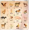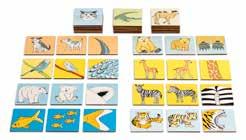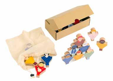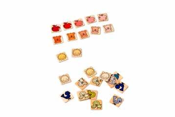 Place the wooden figures in the right place on the assignment card. Place the figures in the cotton bag to identify them by touch. Name the figures and develop vocabulary. Play the bingo game to develop the skills of playing together. 3Y+