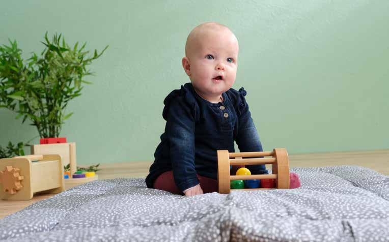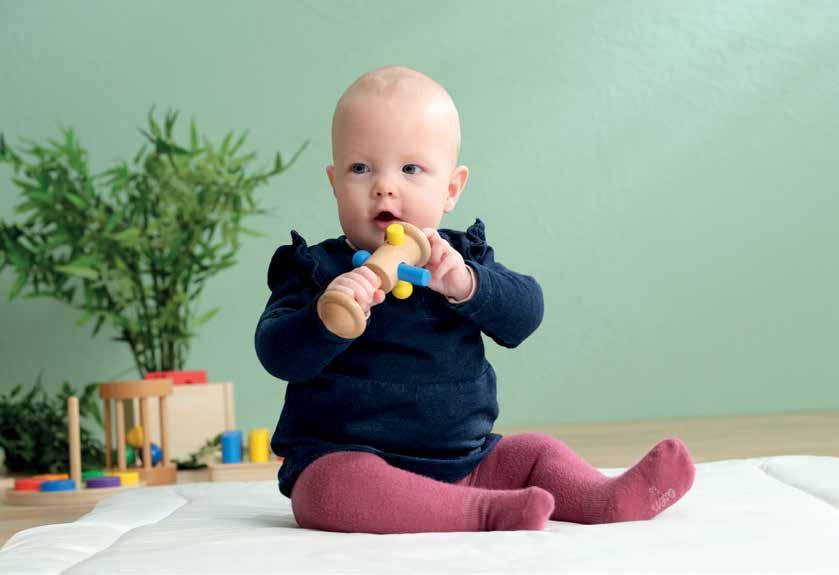 Wrap the Fabric introduces you to the principle of cause and effect and to the peek-a-boo effect, and at the same time stimulates your motor skills. By pulling out and subsequently winding the strip, the child learns that things they do not see, simply can exist.