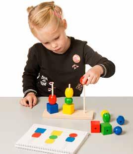 Learn about shapes, colors, order and patterns. Follow the patterns as shown on the assignment cards to fill the stand or thread. Choose your own colors for the black and white patterns. 3Y+