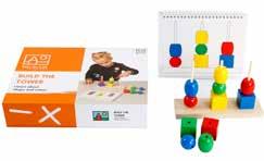 Build towers as shown on the assignment cards. Learn to distinguish various colors and shapes and to convert a 2-D picture into a 3-D structure. Improve hand-eye coordination and fine motor skills. 3Y+
