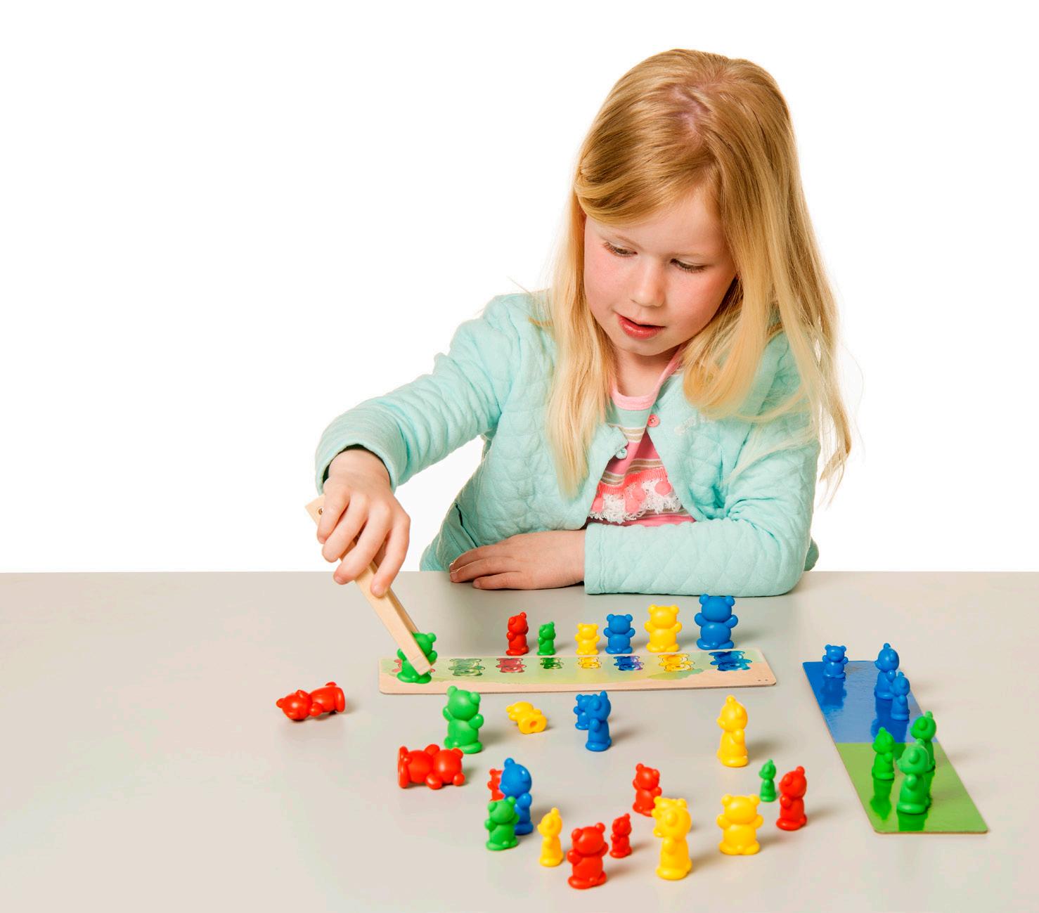 Place the bears with the same color and size in front of the assignment card. Use the tweezer to develop fine motor skills. 3Y+