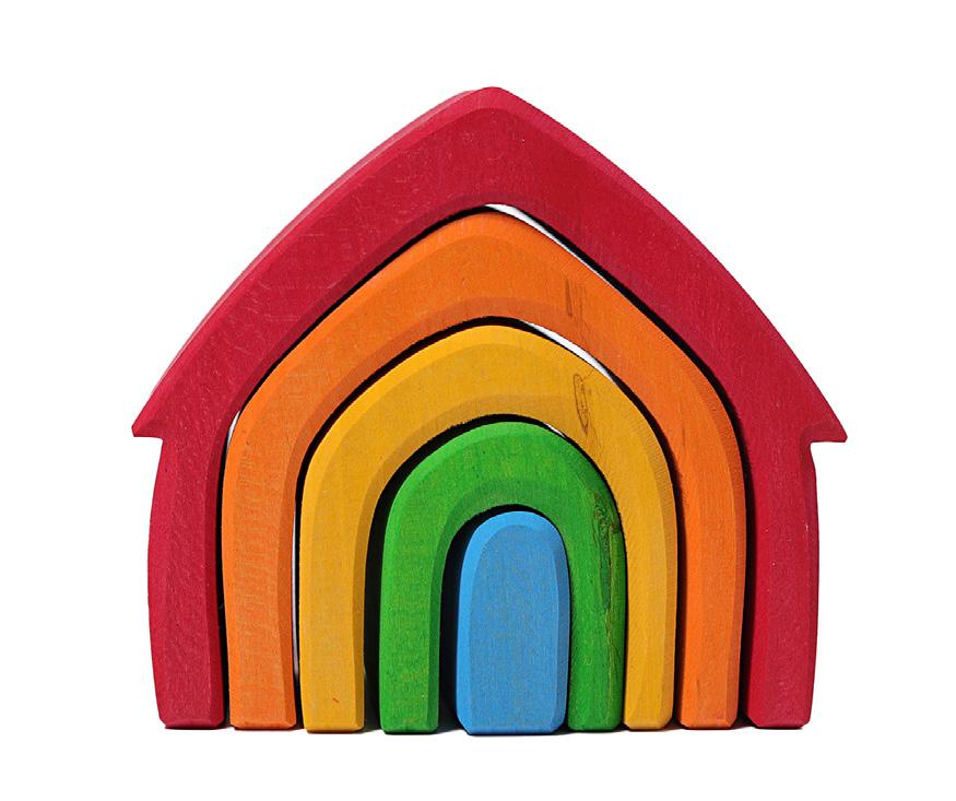 Toddlers can stack, sort, and build with the Natural Rainbow Stacker. As children get older, they can use it as a cradle for dolls, a fence for animals, a tunnel or bridge for vehicles, or a house for dollhouse dolls! 1Y+