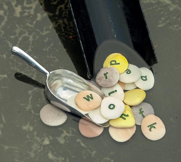 Specially cast from our unique stone and resin mix, each stone is engraved and hand-painted with a letter. 3Y+