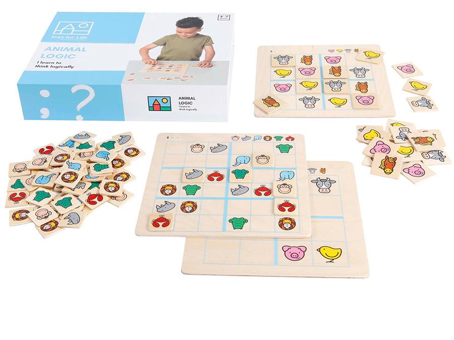 Challenging game based on the principle of the well-known Sudoku puzzles. The rows and columns may have each item used only once. Children engage analytical and creative thinking. 3Y+