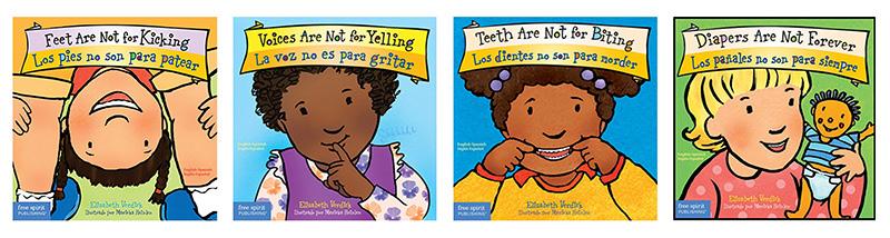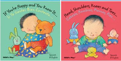Simple, brightly colored cloth books for the youngest hands (and mouths!) covering a variety of introductory topics in English and Spanish.