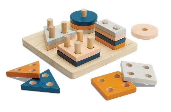 Toddlers can stack, sort and build with organic flame shapes that can be easily integrated into more mature imaginative play as dollhouses, tents, stacked sculptures and much more. 1Y+