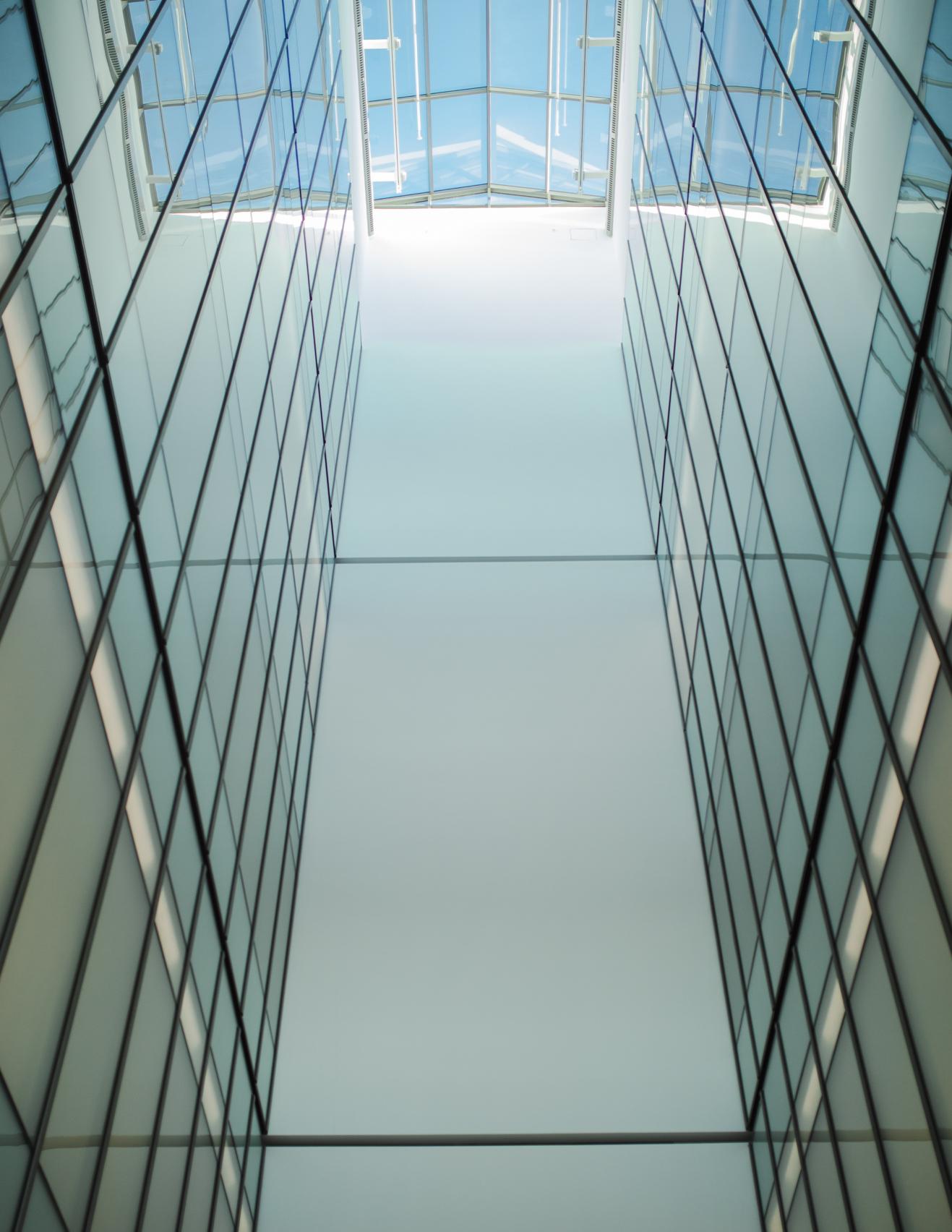 The courthouse reimagines justice architecture, blending a sense of civic importance with warmth and inclusivity. A prominent wood-look canopy defines the entrance, offering a welcoming yet protective gesture. The jewel-box-like entry vestibule softens the transition from the exterior to the interior, creating a calming and dynamic experience for visitors.