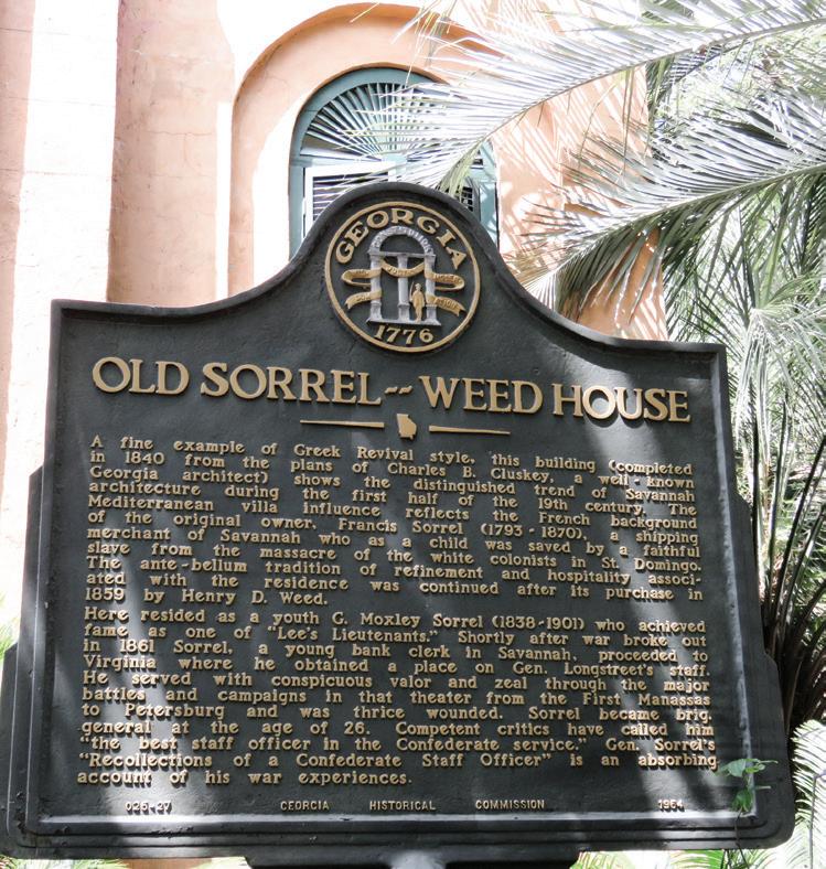 Scattered along cobblestone streets, Spanish moss-covered live oaks shelter century-old buildings that help preserve the history of Savannah. Located on 6 W Harris St., the Sorrel-Weed House is unmistakable with its rust-colored exterior, contrasting green shutters and a column-covered front porch that welcomes visitors both corporeal and spiritual.
