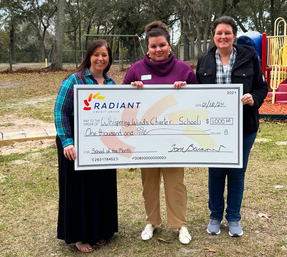 Radiant Credit Union is excited to kick off the year by celebrating Whispering Winds Charter School in Chiefland, Florida, as our School of the Month for January! Their dedication to fostering young minds is truly commendable. We’re honored to donate $1,000 to support their educational endeavors.