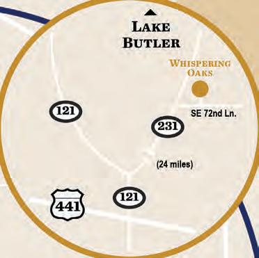 From Publix on Newberry Road and NW 143rd Street in Jonesville, go west 1 mile to SW 170th St (CR 241 South), turn left and go 1 mile to SW 15th Avenue, turn right. Go 1 mile to SW 188th Street, and turn left into Dylan’s Grove.