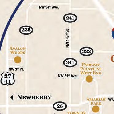 From I-75 North, exit 387 for FL-26 W/Newberry Rd toward Newberry, Turn left onto FL-26 W/W Newberry Rd, continue for 4 miles, Turn Right onto Newberry Ln, Turn Right onto US 27/US 41, Turn right into community (NW 21st Place). Model home is located 1 block up on the left side (corner of NW 21st Pl and NW 248th Way) Avalon Woods community is located 1/2 mile North of the Newberry Recreation-Archery Center.