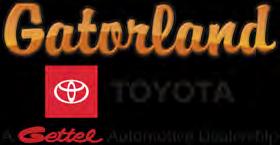 SEPT/OCT 2023 OUR TOWN MAGAZINE | 5 1With approved credit. 3-month deferred payments through Southeast Toyota Financial Services and remaining months financing paid by the dealer for up to $300 per month on new vehicle retail contracts. Interest accrues from inception/ contract date. Cannot be combined with other discounts. 0% is available on new select 2023 Toyota models for a limited time at Gatorland Toyota. Max of $30,000 amount to be financed through dealership preferred lender. Dealer retains all rebates and incentives. Terms will vary. Excludes tax, tag, title fee, $1099 pre-delivery service fee & $385 electronic tag registration fee. See dealer for complete details. Offer valid through 10/31/23. 2Up to $5,500 over book value. Based fair market value. Cannot be combined with any other offers, discounts or incentives. All other offers based off of vehicle make, year, mileage, condition, etc. See dealer for details. Additional trade value only when combined with a purchase of a new Toyota. Not retroactive. Vehicles with current or previous damage do not qualify. Dealer promotional offer through 10/31/23. SALES IS OPEN 7 DAYS A WEEK TO SERVE YOU! Monday - Friday: 9 a.m - 8 p.m | Saturday: 9 a.m - 7 p.m • Sunday: Noon - 6 p.m 2985 N MAIN ST GAINESVILLE, FL 2 MILES NORTH OF UNIVERSITY AVE. ON MAIN ST. 352-224-3408 Gatorland Toyota has been awarded Our Town “FAVORITE LOCAL CAR DEALERSHIP” for the last four years! GATORLANDTOYOTA.COM Trade-in Bonus Over Book Value 2 $5,500 GET UP TO Buy Today and Make Buy any new Toyota with NO PAYMENTS FOR 6 MONTHS! 1 $0 DOWN! 1 0% APR FINANCING AVAILABLE 1 GATORLAND TOYOTA | A GETTEL DEALERSHIP OR