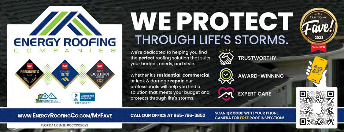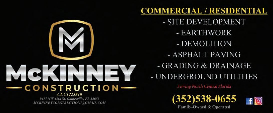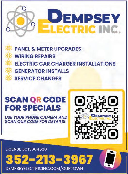 4 | OUR TOWN MAGAZINE MAY/JUN 2023 352-377-2896 www.gomaccustombuilders.com Building Custom Homes since 1999 CBC 1254653CBC 1254654 352-377-2896 Sanfelascorealestate.com SPECIALIZING IN RESIDENTIAL RE-SALES, NEW CONSTRUCTION, AND VACANT LAND Family Owned and Operated