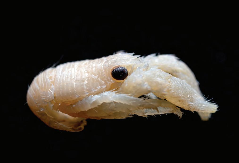 Smaller than a pinky fingernail, this South Pacific squat lobster was found on a 2006 expedition to Moorea, off Tahiti. Squat lobster species inhabit the world’s oceans; in life they are very colorful lobsters, decked out like miniature clowns in stripes and polka dots.
