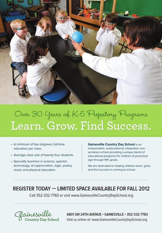 REGISTER TODAY — LIMITED SPACE AVAILABLE FOR FALL 2012 Call 352-332-7783 or visit www.GainesvilleCountryDaySchool.org