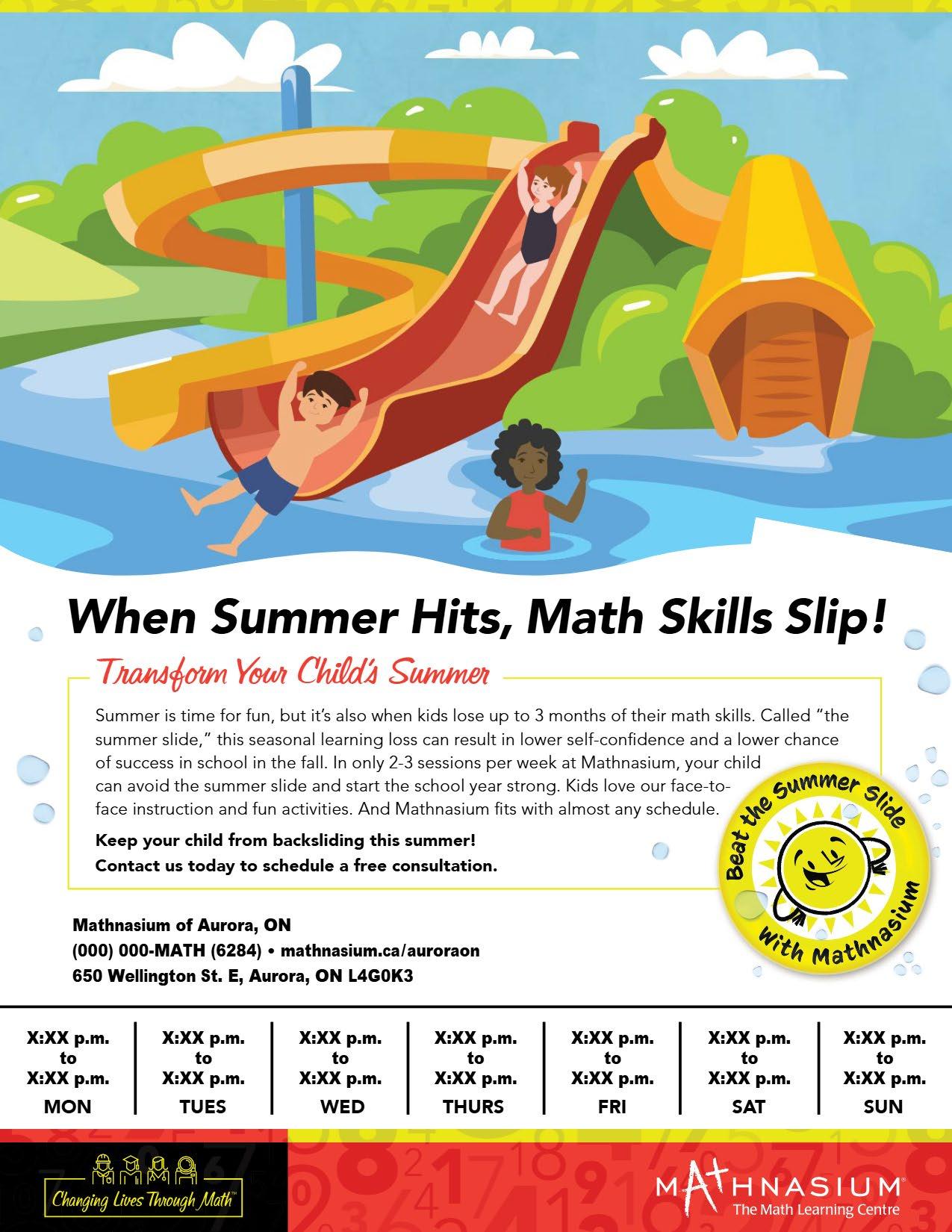Mathnasium of Aurora, ON (905) 841-MATH (6284) • mathnasium.ca/auroraon 650 Wellington St. E, Aurora, ON L4G 0K3 (Bayview & Wellington)