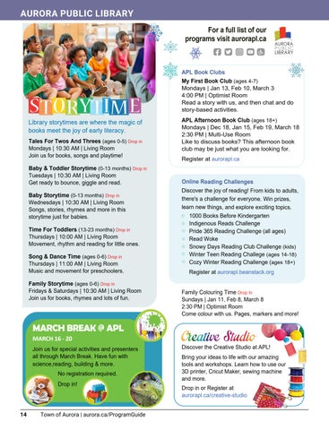 ° Visit the www.aurora.ca/ProgramGuide webpage for full details.
