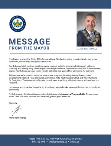 I’m pleased to share the Winter 2026 Program Guide, filled with eciting opportunities to stay active, connected, and inspired throughout the season.