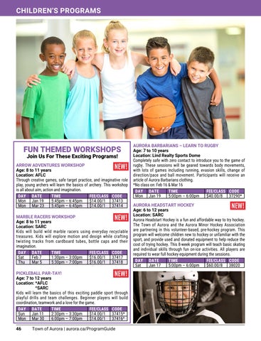 ° Visit the www.aurora.ca/ProgramGuide webpage for full details.