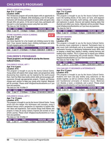 ° Visit the www.aurora.ca/ProgramGuide webpage for full details.
