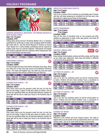 ° Visit the www.aurora.ca/ProgramGuide webpage for full details.