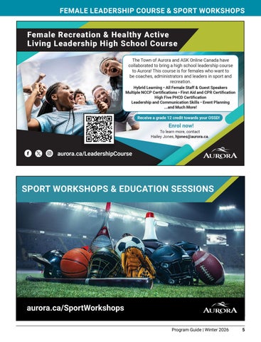 For full program details and to access the digital guide, visit aurora.ca/ProgramGuide. To learn more about Town of Aurora services and amenities, please go to aurora.ca.