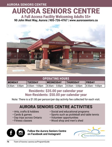 ° Visit the www.aurora.ca/ProgramGuide webpage for full details.