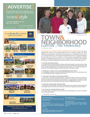 Q. Do you have a favorite spot in Clayton? A. We enjoy Oceano—really that strip of restaurants (on Brentwood Boulevard). It looks very European.