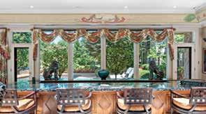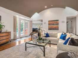 The sunken living room has a beautiful barrel ceiling and offers access to a private courtyard, as well as the patio that leads to the backyard—complete with pool, tennis court and pool house.